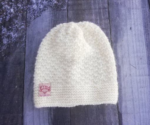 GORRO TEJIDO A MANO, DOS AGUJAS, PUNTO , LANA CORRIEDALE, HILADO FINO 1 HEBRA, COLOR NATURAL