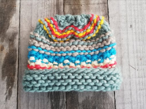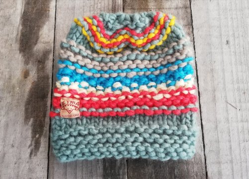 GORRO TEJIDO A MANO, DOS AGUJAS, CON LANA DE OVEJA CORRIEDALE DE MAGALLANES, TEÑIDO ARTESANAL, COLORES CELESTE, NARANJA, NATURAL, CALIPSO, GRIS