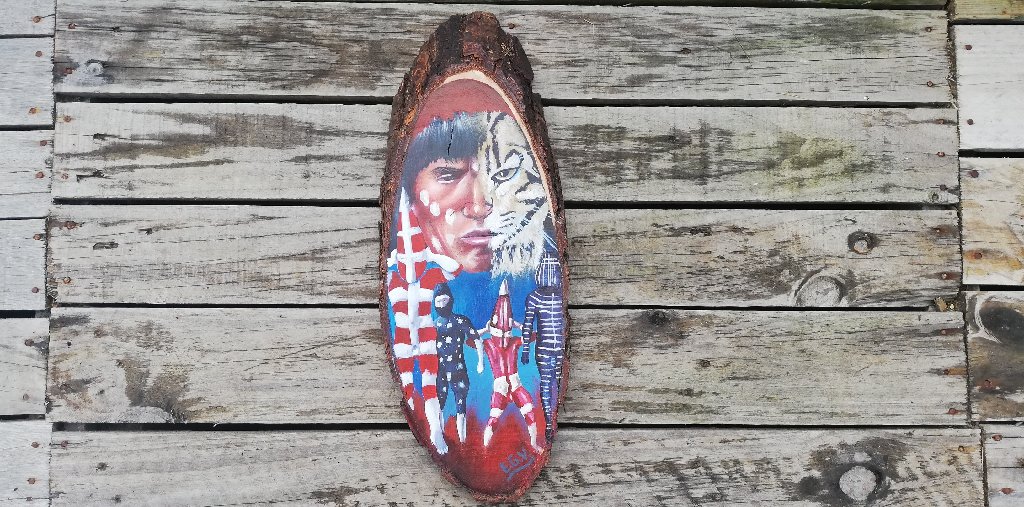 RODAJA DE MADERA RÚSTICA PINTADA CON MOTIVOS SELKNAM
